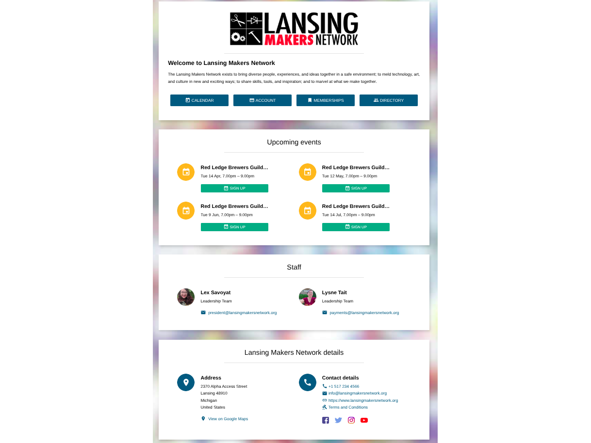 On the backend we are excited about its expanded financial and membership reporting, automation possibilities, and booking software. This will allow the Leadership Committee and Board to better understand how the space is used, where we need to focus our efforts, and frankly, spend a little less time the correcting odd membership issues that crop up right now.