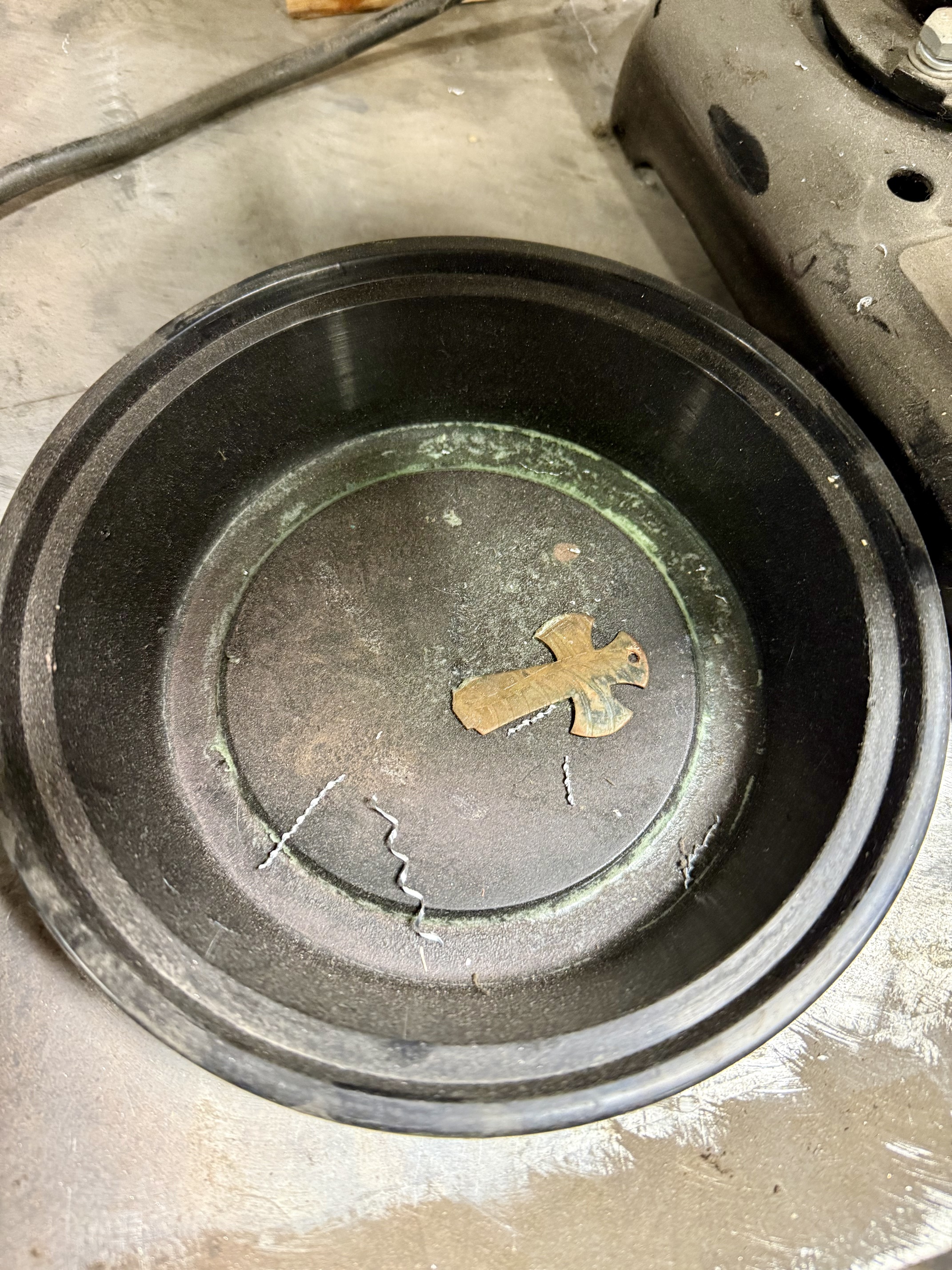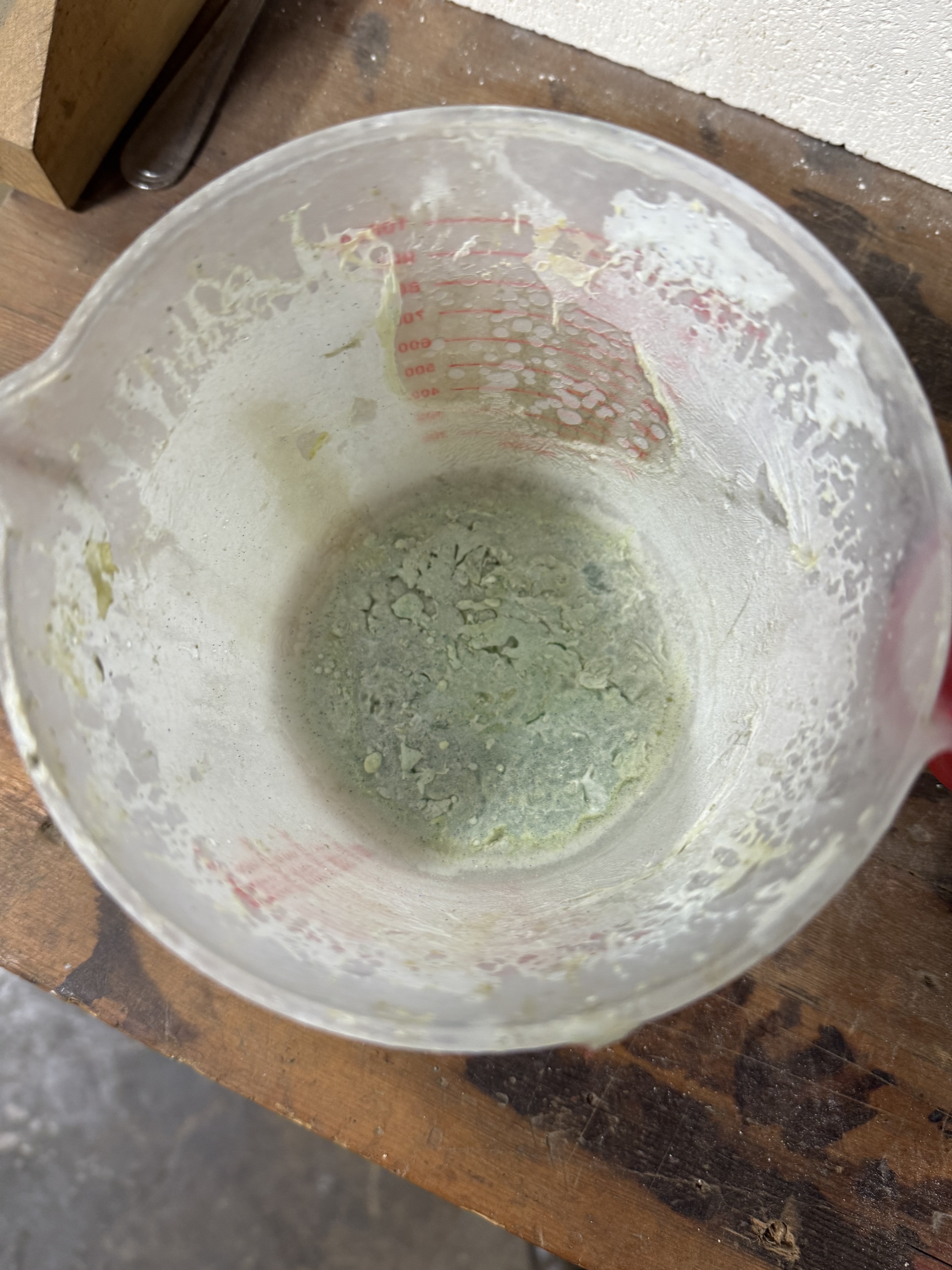 I’ve included just a couple of photos of the messes found in the Metalsmithing area, yesterday. There were a lot + the drill press was used to drill a contaminating metal.